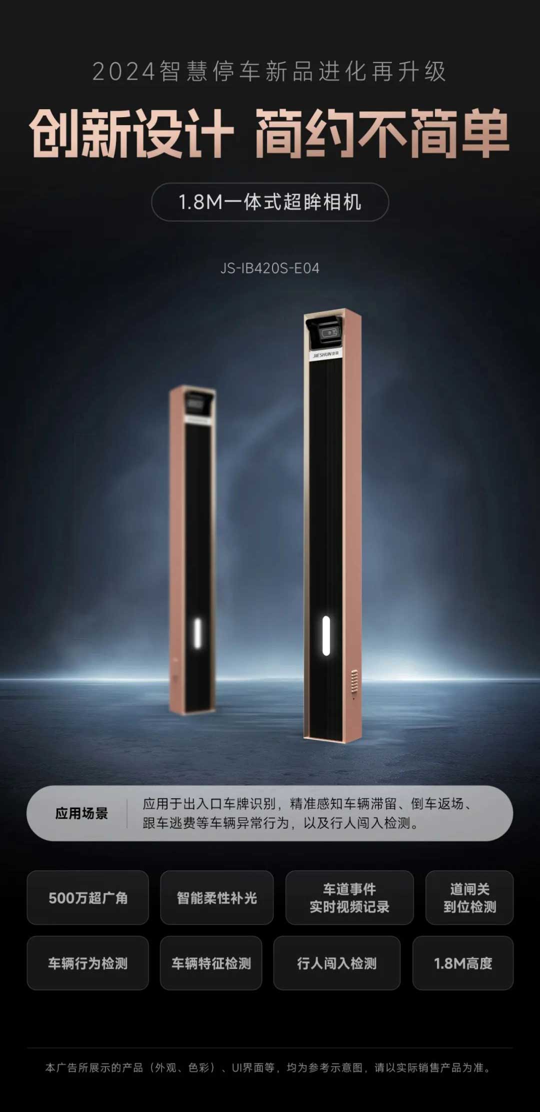 創(chuàng)新設(shè)計(jì) 簡(jiǎn)約不商單:500萬超廣角,智能柔性補(bǔ)光,車道事件實(shí)時(shí)視頻記錄,道閘關(guān)到位檢測(cè),車輛行為檢測(cè),車輛特征檢測(cè),行人闖入檢測(cè),1.8M高度