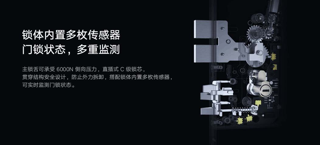 該門鎖全自動(dòng)鎖體內(nèi)搭載動(dòng)力系統(tǒng),驗(yàn)證通過后,主鎖舌快速收回,推拉把手即可開門,離家關(guān)門自動(dòng)上鎖。主鎖舌可承受6000N 側(cè)向外力,直插式C 級(jí)鎖芯,貫穿結(jié)構(gòu)安全設(shè)計(jì),防止外力拆卸。