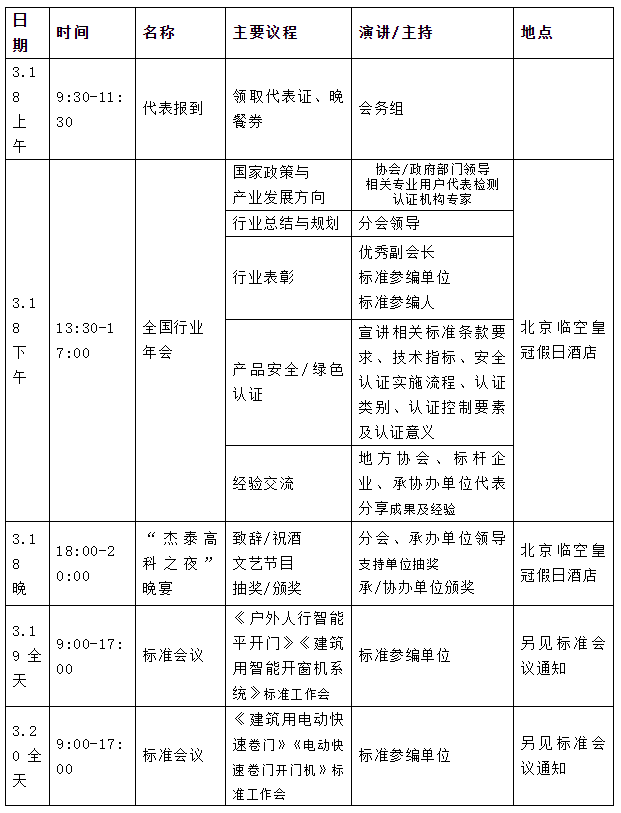 1. 3月19日《戶外人行智能平開門》《建筑用智能開窗機系統(tǒng)》標準第二次工作會;