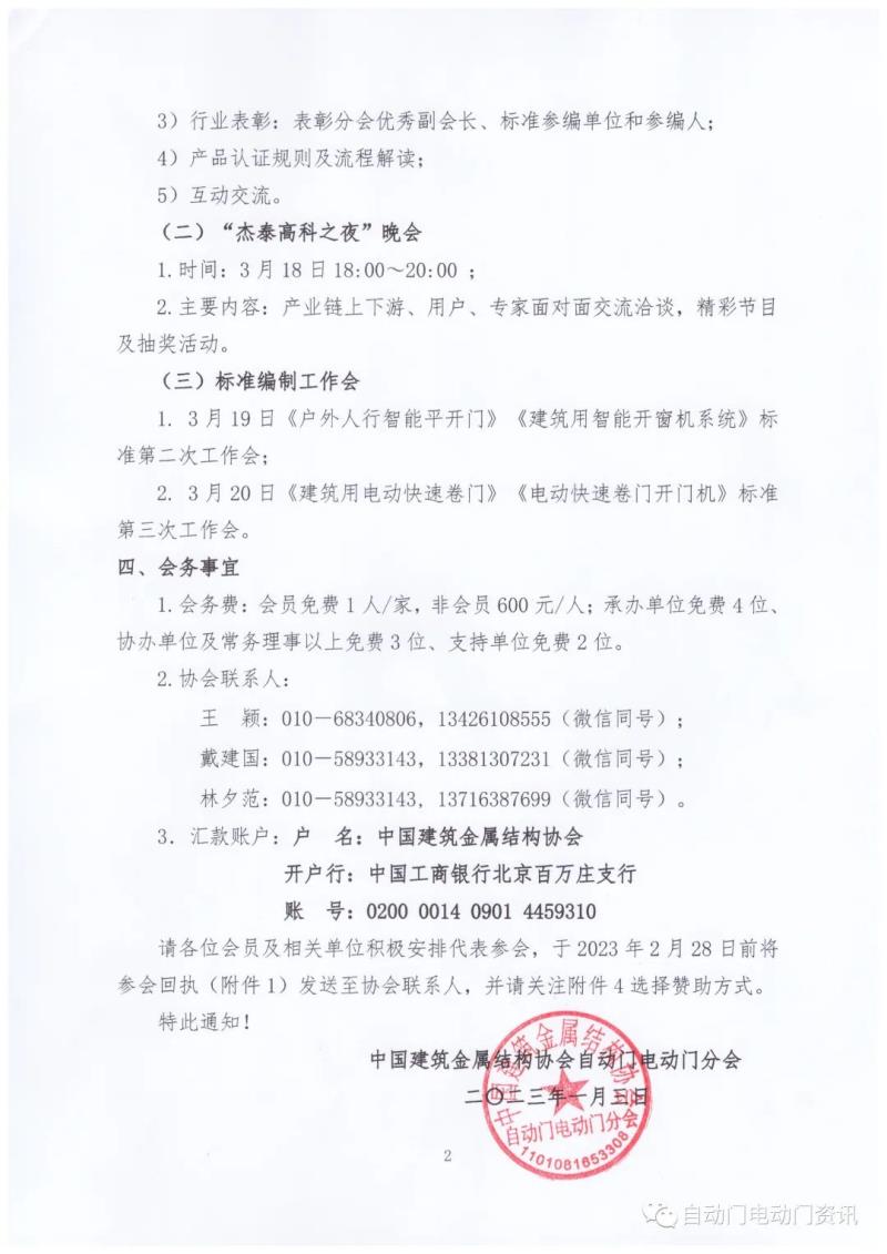 注:請務必于2月28日前,將宣傳資料/資料袋/紀念品/獎品寄至:中國建筑金屬結構協(xié)會自動門電動門分會(北京市海淀區(qū)車公莊西路乙8號203室);贊助款于2月28日前匯至協(xié)會賬戶。如有其他形式贊助或委托協(xié)會組織活動,請于2月20日前與分會聯(lián)系人對接。