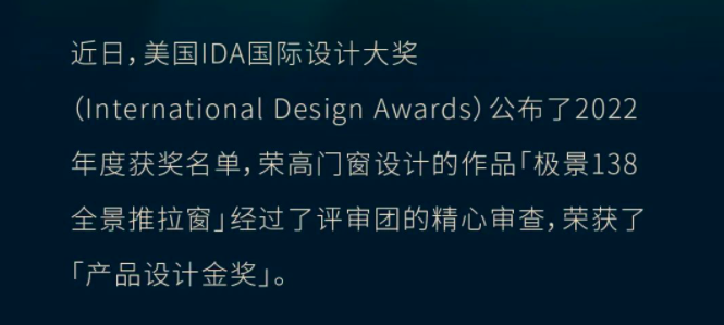 榮高門窗榮獲 IDA國際設(shè)計金獎