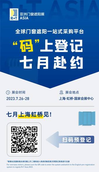 2023第十八屆R+T Asia亞洲門窗遮陽展煥新出發(fā),定檔7月26-28日于國家會展中心(上海),在持續(xù)發(fā)揮內(nèi)外貿(mào)優(yōu)勢的同時,繼續(xù)攜手BUILD ASIA Mega Show亞洲建筑及裝飾聯(lián)展,打造集產(chǎn)業(yè)聯(lián)動、工程集采、設(shè)計應(yīng)用、國際商貿(mào)為一體的全產(chǎn)業(yè)鏈服務(wù)平臺。