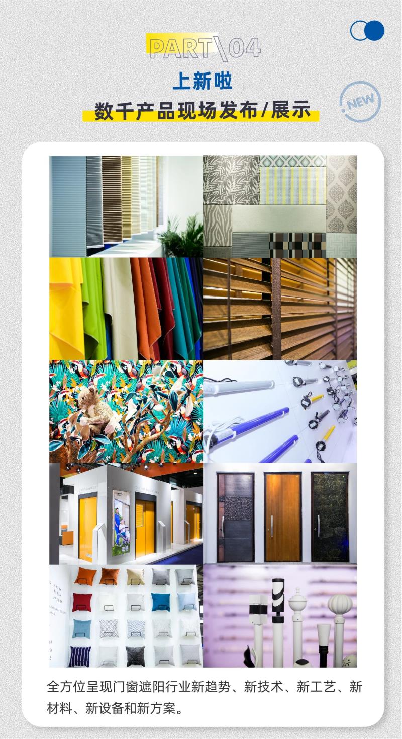 今年,眾多國(guó)際品牌紛紛強(qiáng)勢(shì)回歸,國(guó)內(nèi)知名企業(yè)和新星品牌也將逐一亮相。覆蓋遮陽(yáng)面料、配件、驅(qū)動(dòng)及控制系統(tǒng)、外遮陽(yáng)、機(jī)械、窗飾成品、百葉窗透氣窗等建筑遮陽(yáng)細(xì)分領(lǐng)域以及工業(yè)門(mén)、自動(dòng)門(mén)、車(chē)庫(kù)門(mén)、入戶(hù)門(mén)、門(mén)機(jī)門(mén)控等門(mén)及門(mén)禁上下游產(chǎn)業(yè)鏈,實(shí)現(xiàn)門(mén)窗遮陽(yáng)全產(chǎn)業(yè)鏈跨界共融,資源共享。