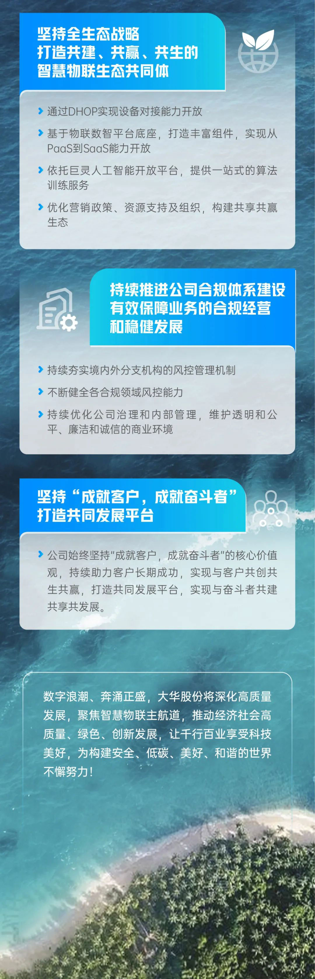 數(shù)字浪潮、奔涌正盛,大華股份將深化高質(zhì)量發(fā)展,聚焦智慧物聯(lián)主航道,推動(dòng)經(jīng)濟(jì)社會(huì)高質(zhì)量、綠色、創(chuàng)新發(fā)展,讓千行百業(yè)享受科技美好,為構(gòu)建安全、低碳、美好、和諧的世界不懈努力!