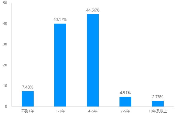 對(duì)于充電行業(yè),從業(yè)4-10年,雖然還無(wú)法稱之為行業(yè)老兵,但相較于入行不到3年的新手小白來(lái)說(shuō),兩方數(shù)據(jù)占比幾乎不相上下。