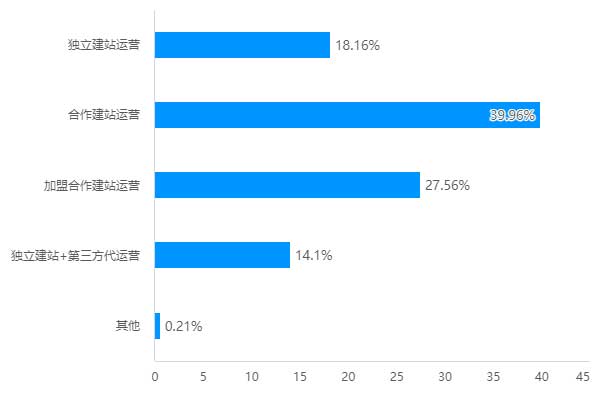 在“場(chǎng)站運(yùn)營(yíng)模式”調(diào)研中,“合作建站運(yùn)營(yíng)”占比最高,接近四成。其次分別是27.56%的運(yùn)營(yíng)商目前是加盟合作建站運(yùn)營(yíng),18.16%的運(yùn)營(yíng)商獨(dú)立運(yùn)作,14.1%的運(yùn)營(yíng)商選擇“獨(dú)立建站+第三方代運(yùn)營(yíng)”的方式。