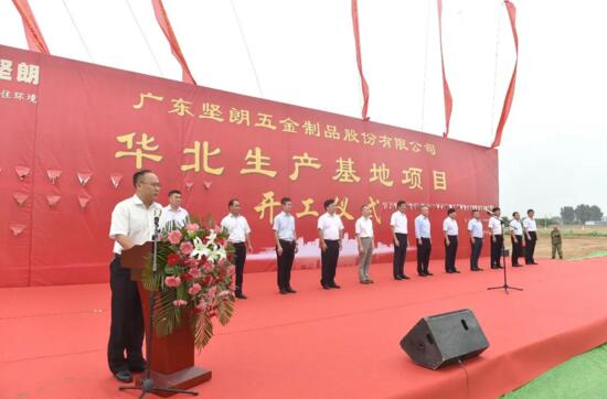7月22日上午,廣東堅朗五金制品股份有限公司華北生產(chǎn)基地項目奠基慶典儀式在衛(wèi)輝市后河專業(yè)園區(qū)堅朗項目地塊舉行。