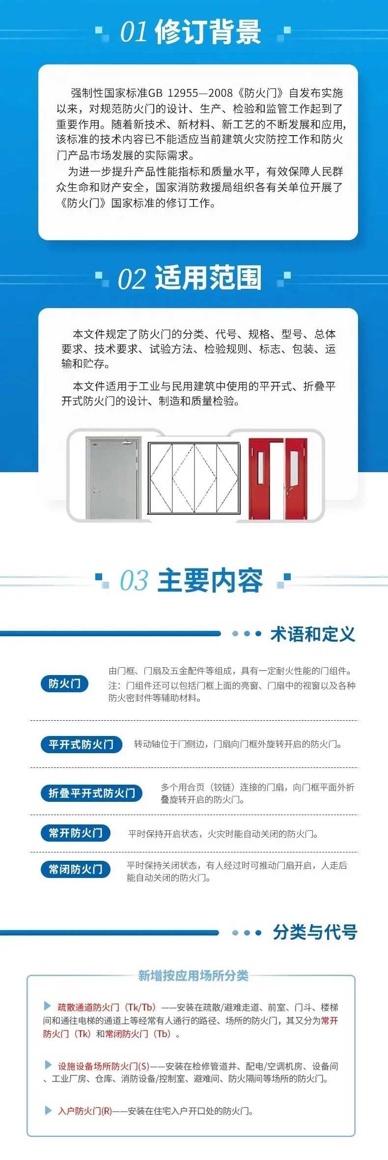 強制性國家標準GB 12955-2008《防火門》自發(fā)布實施以來,對規(guī)范防火門的設計、生產、檢驗和監(jiān)管工作起到了重要作用。隨著新技術、新材料、新工藝的不斷發(fā)展和應用該標準的技術內容已不能適應當前建筑火災防控工作和防火門產品市場發(fā)展的實際需求。為進一步提升產品性能指標和質量水平,有效保障人民群眾生命和財產安全,國家消防救援局組織各有關單位開展了《防火門》國家標準的修訂工作。