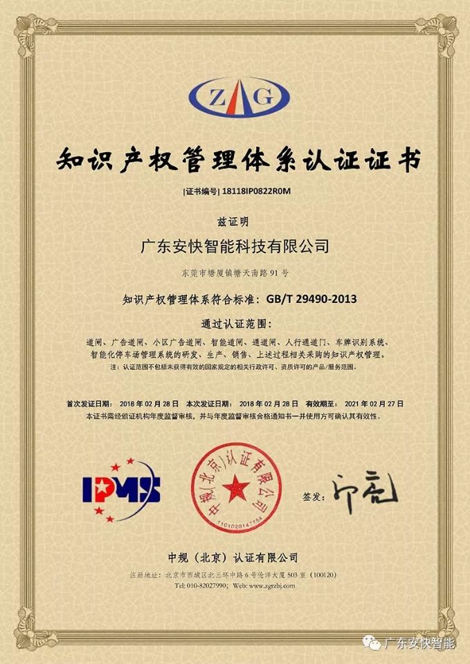 知識產(chǎn)權(quán)的評選條件十分嚴格。從自我申報、提交申報材料、合規(guī)性審查與認定,再到公示與備案、專家評定等程序,安快經(jīng)過層層審批,耗時數(shù)月終于獲得“知識產(chǎn)權(quán)管理體系證書”認證殊榮,祝賀他們。