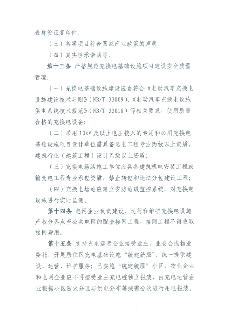 此外,充換電基礎(chǔ)設(shè)施項(xiàng)目投資主體需通過(guò)湖南省投資項(xiàng)目在線審批監(jiān)管平臺(tái)線上辦理備案手續(xù)。項(xiàng)目投資主體通過(guò)在線平臺(tái)下載《備案證明》,向供電企業(yè)申請(qǐng)業(yè)擴(kuò)報(bào)裝、項(xiàng)目投資主體不得自行變更項(xiàng)目備案文件的主要事項(xiàng),包括投資主體、建設(shè)地點(diǎn)、項(xiàng)目規(guī)模、運(yùn)營(yíng)模式等。
