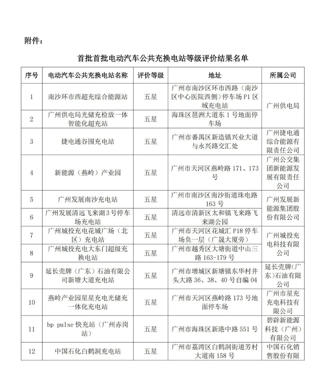 廣州市電動(dòng)汽車充換電設(shè)施行業(yè)協(xié)會(huì)于2023年10月28日發(fā)布了《電動(dòng)汽車公共充換電站等級(jí)評(píng)價(jià)規(guī)范》團(tuán)體標(biāo)準(zhǔn),同年12月1日試行《廣州市電動(dòng)汽車公共充換電站等級(jí)評(píng)價(jià)試行辦法》。并按《電動(dòng)汽車公共充換電站等級(jí)評(píng)價(jià)規(guī)范》評(píng)價(jià),2025年3月10日公布首批電動(dòng)汽車公共充換電站等級(jí)評(píng)價(jià)站點(diǎn)。