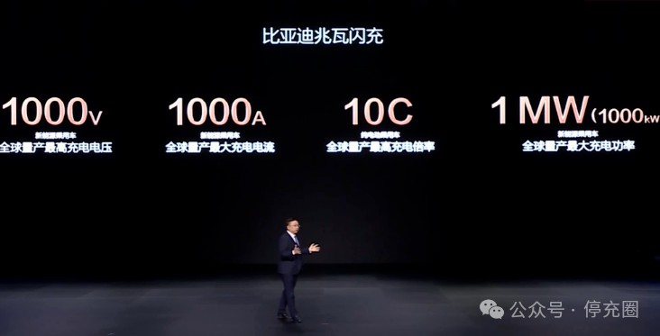 3月17日晚間,比亞迪“兆瓦閃充”技術(shù)正式亮相。該技術(shù)可實(shí)現(xiàn)最高充電電壓1000V,最大充電電流1000A,最大充電功率1MW,最高充電倍率10C,最高峰值充電速度可達(dá)1秒2公里。