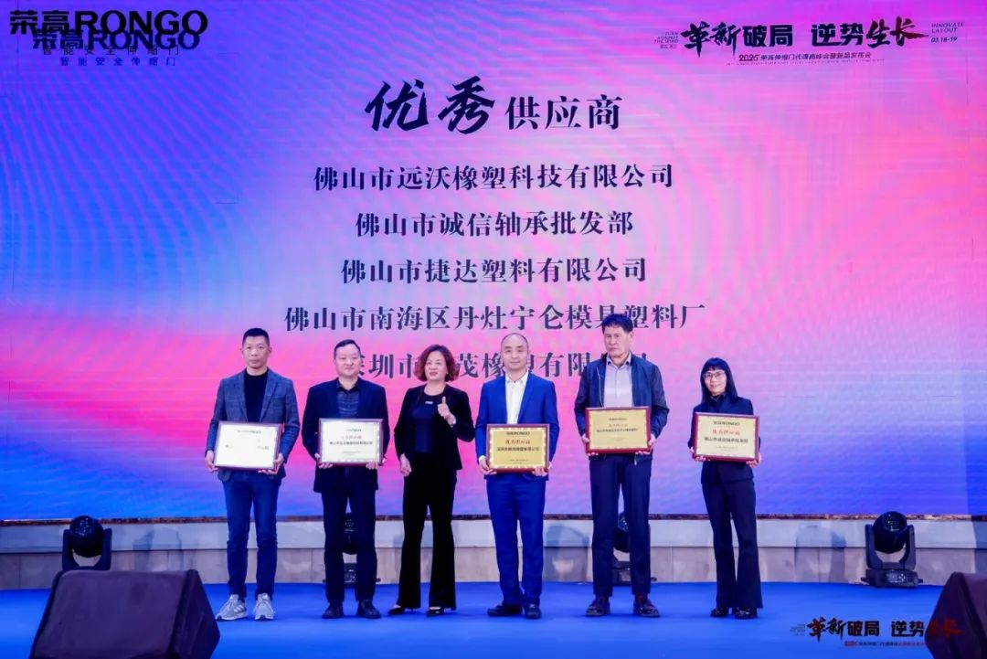 此外榮高智能還對多年來一直與榮高智能緊密合作的供應(yīng)商進(jìn)行授予獎牌并合影留念,向獲獎單位盡心竭力的支持表示感謝,好的產(chǎn)品離不開優(yōu)秀的供應(yīng)商,未來日子里能繼續(xù)砥礪前行,練內(nèi)功,謀發(fā)展,踐行品質(zhì)發(fā)展之路!