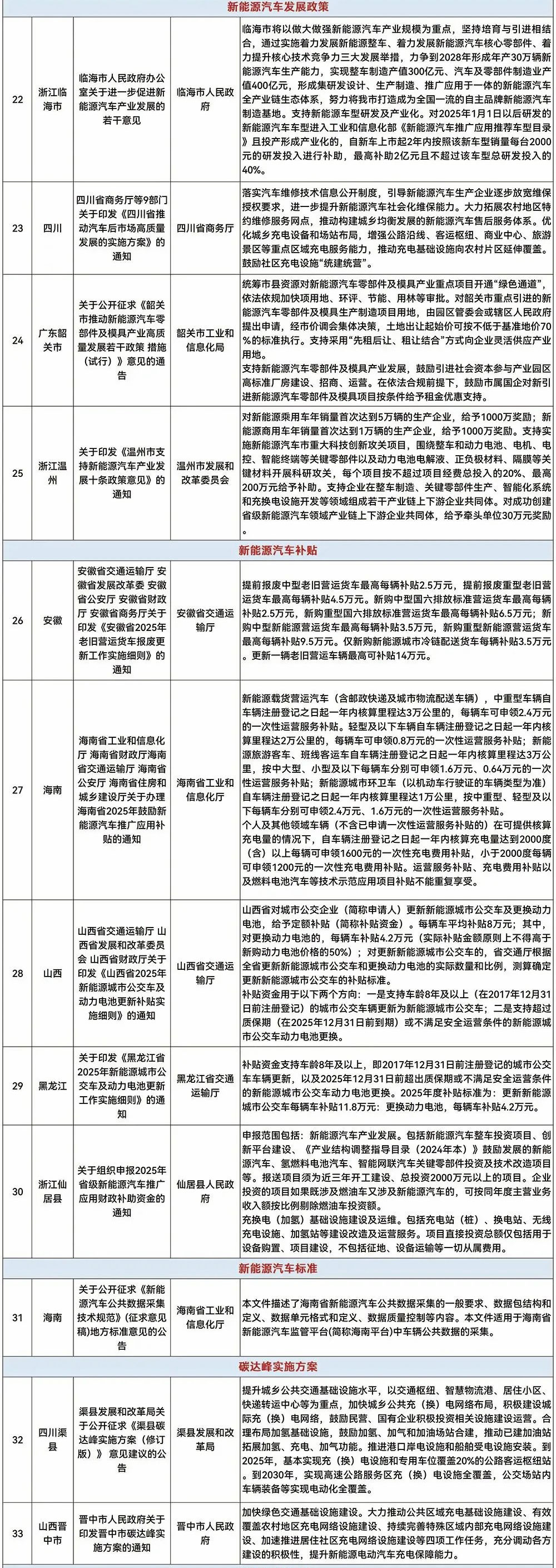 新能源汽車補(bǔ)貼:安徽、海南、山西、黑龍江、浙江仙居縣等地發(fā)布5條。