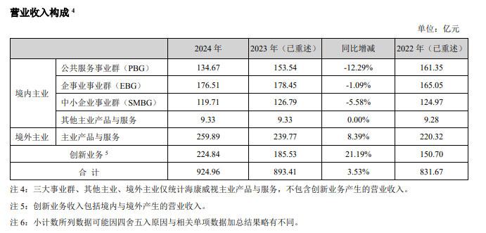 2024 年,海康威視總營收達到 924.96 億元,同比增長 3.53%。