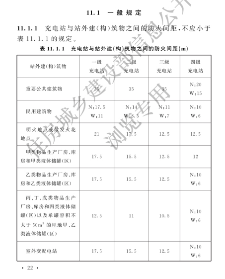 對于遭受充電樁設備噪音影響的居民住戶來說,他們投訴和解決噪音問題的訴求是有法可依的。根據(jù)住房城鄉(xiāng)建設部發(fā)布的國家標準《電動汽車充電站設計規(guī)范》中的相關規(guī)范要求,對于汽車充電站與建筑物之間的間距如表: