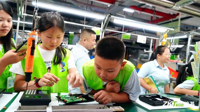 在專業(yè)技術(shù)員指導(dǎo)下,他們化身 “小小工程師”,親手組裝智能考勤設(shè)備:從識(shí)別零部件到精確咬合接口,從調(diào)試程序到功能測(cè)試,每一步都考驗(yàn)著對(duì)細(xì)節(jié)的把控,每一次嘗試都飽含探索的激情。當(dāng)親手組裝的設(shè)備成功啟動(dòng)時(shí),成就感如陽光般綻放于臉龐,科技的種子也在實(shí)踐中悄然生根發(fā)芽。