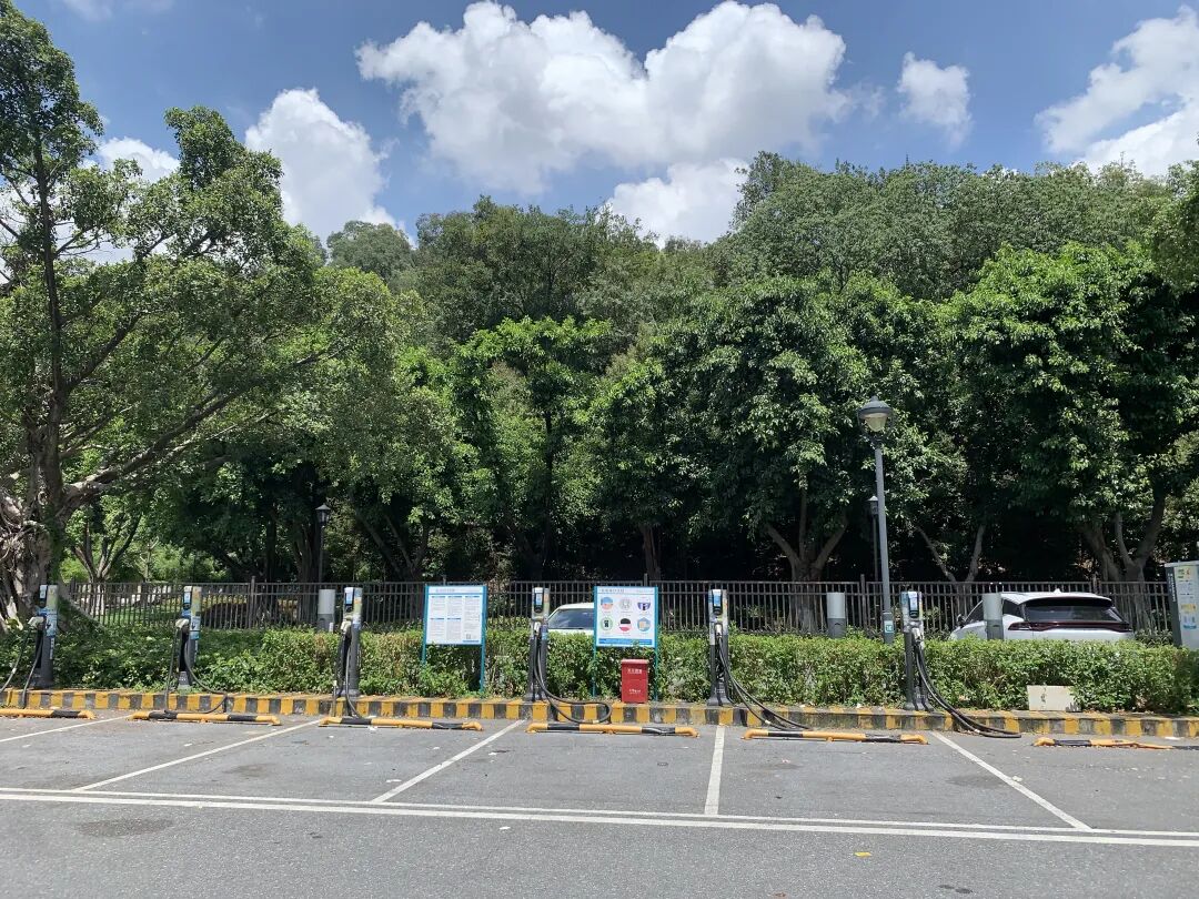 由于不是周末,到公園游玩的人聊聊無幾,25個車位只停了6輛新能源車,均不是在充電的狀態(tài)。現(xiàn)場衛(wèi)生環(huán)境和停車便捷度方面都比較優(yōu)越。停充圈在該場停留半個小時,并沒有看到過來充電的車輛。據(jù)了解,該場站夜間峰谷充電繁忙,多數(shù)為網(wǎng)約車和貨車,觀察期間低價時段20個快充樁14個處于充電狀態(tài)。