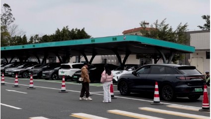 停充圈在濟(jì)廣高速瓦溪服務(wù)區(qū)觀察到,大年初一該服務(wù)區(qū)充電區(qū)停滿充電車(chē)輛,后續(xù)七八輛汽車(chē)有條不紊的等待充電。瓦溪服務(wù)區(qū)雙向共有充電車(chē)位59個(gè),是廣東首個(gè)高速公路服務(wù)區(qū)綠色數(shù)字化光儲(chǔ)充超級(jí)充電站。