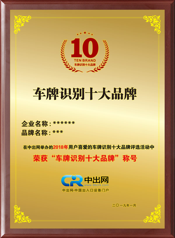 2018年度中國車牌識別十大品牌