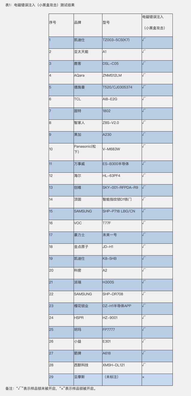 網(wǎng)上流傳的“小黑盒秒開智能門鎖”傳聞讓很多選擇了智能門鎖的用戶開始提心吊膽起來。而為了驗(yàn)證這個(gè)傳聞,中國(guó)消費(fèi)者協(xié)會(huì)聯(lián)合四川、深圳、佛山消費(fèi)者委員會(huì)對(duì)29款智能門鎖樣品進(jìn)行了比較試驗(yàn)。并公布了29款智能鎖比較試驗(yàn)結(jié)果,其中,有28款小黑盒攻擊后未出現(xiàn)開啟現(xiàn)象,僅1款無(wú)生產(chǎn)廠家信息標(biāo)注的樣品小黑盒攻擊后被打開。