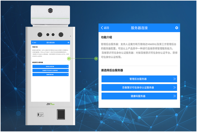 與其他門禁智能面板不同的是,ID900智能人證核驗終端不僅僅確保通行安全,同時還支持與各地防疫大數(shù)據(jù)平臺對接,并第一時間調(diào)取平臺個人數(shù)據(jù),為預(yù)警監(jiān)測、流調(diào)等防疫工作提供數(shù)據(jù)支撐,深入賦能基層數(shù)字化防疫。通過身份證或二維碼識別器,ID900還可以自動調(diào)取來訪人員的健康碼等相關(guān)防疫信息。同時,結(jié)合測溫傳感器,ID900可對來訪人員實時測溫,確保通行人員身體健康。