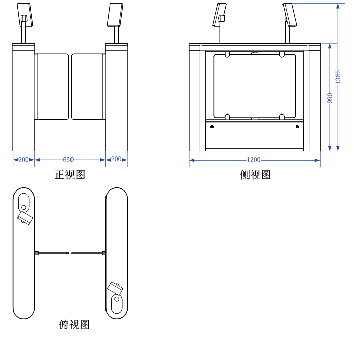 (1)通行方向指示:安裝在機(jī)箱頂部刷卡板附近,指示閘機(jī)的合法通行方向。