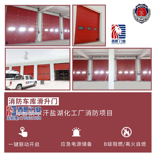 快速分節(jié)滑升門又叫分節(jié)式快速提升門,除了使用在廠房大門、物流倉庫以外,還可以作為消防119應(yīng)急救援中心的車庫門,但在控制功能上要求更高一些:快速分節(jié)滑升門要求實(shí)現(xiàn)119接警聯(lián)動(dòng)開啟(或叫警鈴聯(lián)動(dòng)開啟、一鍵聯(lián)動(dòng)開啟)、通信室集控、單門側(cè)按鈕、應(yīng)急手動(dòng)控制;普通的白色是不行的,門板要求上面紅色、下面藍(lán)色。