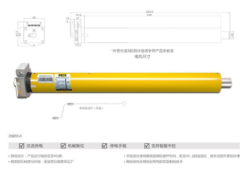 產(chǎn)品名稱:AM60 帶手搖型管狀電機(jī)