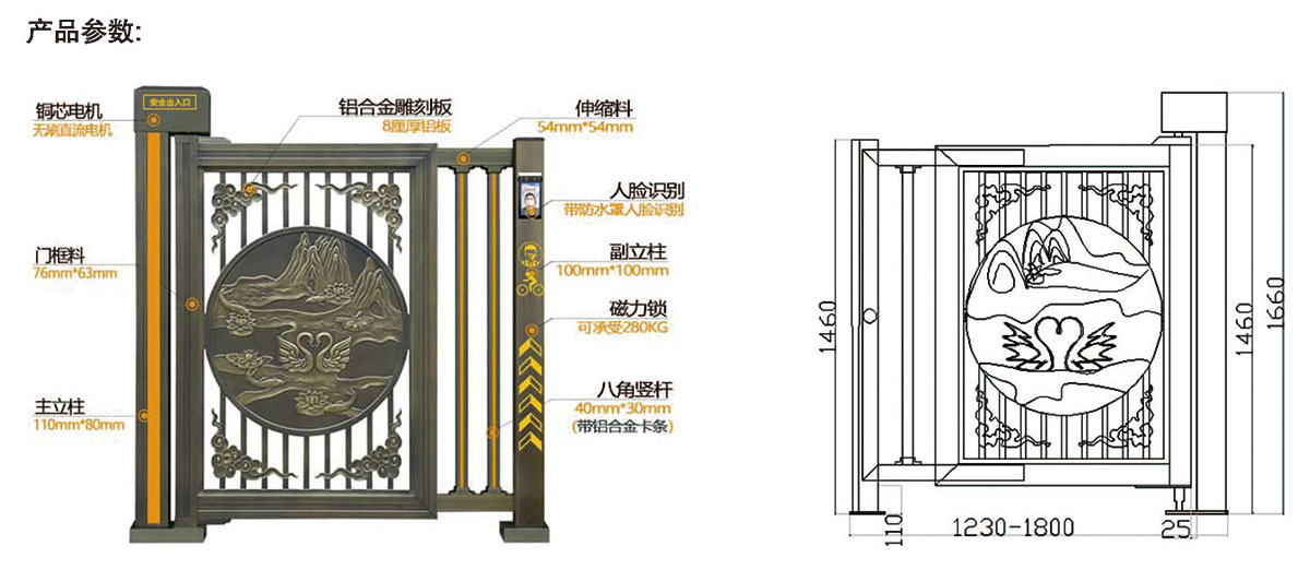 高強(qiáng)度鋁合金高檔小區(qū)私人定制智能通道門,具有快走慢停的功能,運(yùn)行過(guò)程中速度較快,開(kāi)關(guān)門即將到位的時(shí)候,立即減速保證門體開(kāi)關(guān)平穩(wěn)運(yùn)行,無(wú)論自動(dòng)型,手動(dòng)型,均可搭配門禁控制系統(tǒng)使用,對(duì)進(jìn)出人員身份管控,安全性強(qiáng),可遙控遠(yuǎn)距離開(kāi)關(guān)門,方便現(xiàn)場(chǎng)使用。高強(qiáng)度鋁合金通道門主要用于智慧社區(qū),機(jī)關(guān)學(xué)校,企業(yè)事業(yè)、機(jī)關(guān)院校、等人行通道。
