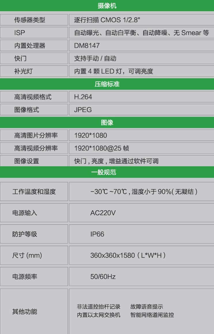 3、自帶補(bǔ)光燈,支持白天和夜間車牌、車型識(shí)別;