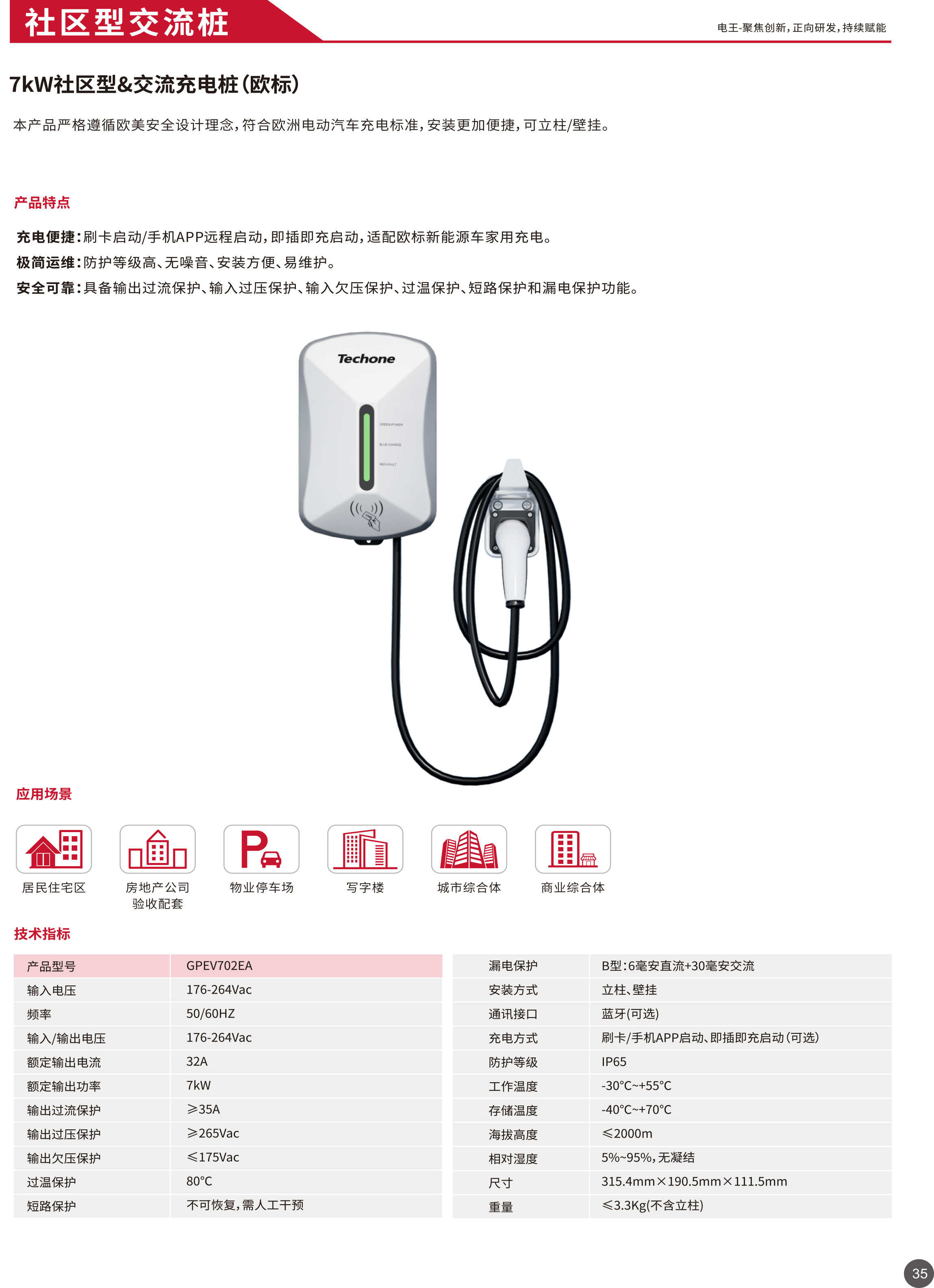 產(chǎn)品名稱:7kW社區(qū)型&交流充電樁(歐標)
