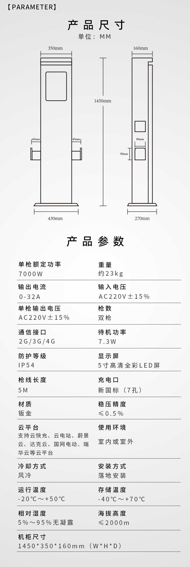 產(chǎn)品名稱:14KW雙槍交流充電樁落地式
