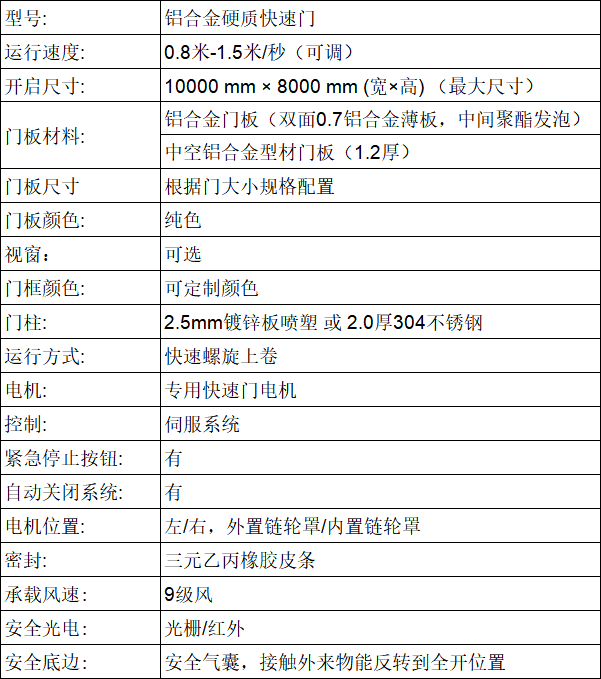 硬質(zhì)快速門--集保溫、節(jié)能、密封、高效、抗風(fēng)、環(huán)保于一身的新型金屬工業(yè)門,開啟速度快速安全,具有很高的可靠性、實(shí)用性、易操作及快速修復(fù)等特性。