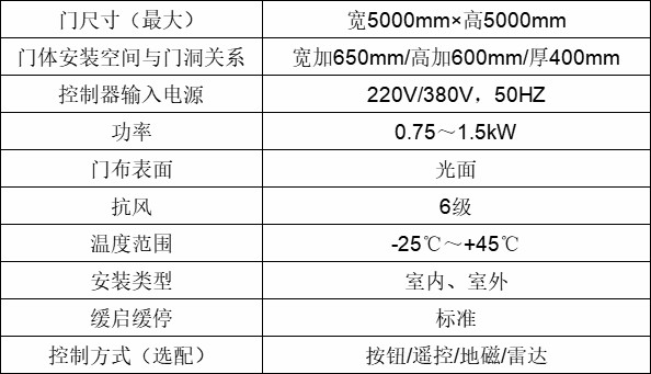 3、電控系統(tǒng)——運(yùn)用變頻控制技術(shù),有軟啟動,緩?fù)V构δ?,保證門體運(yùn)轉(zhuǎn)平穩(wěn)增加使用壽命??刂葡潴w帶按鈕可手動啟動。