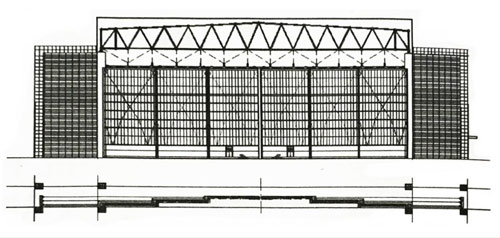 大型(巨型)推拉門采用下承重,上導(dǎo)向結(jié)構(gòu),大門開啟后多扇重疊在門洞兩側(cè)。大門門扇采用型鋼骨架,面板采用寶鋼產(chǎn)壓型彩板、無氟環(huán)保型聚氨酯發(fā)泡板、聚碳酸酯陽光板三種板型供用戶選擇。開門機采用機電一體化裝置,采用PLC變頻控制。行程限位采用光電感應(yīng)無接觸限位。在開門過程中有聲光報警警示。紅外探測遇阻即停功能。如遇停電可轉(zhuǎn)換到手動開啟狀態(tài)。主要適用于飛機機庫、大型船廠及大型工業(yè)車間。