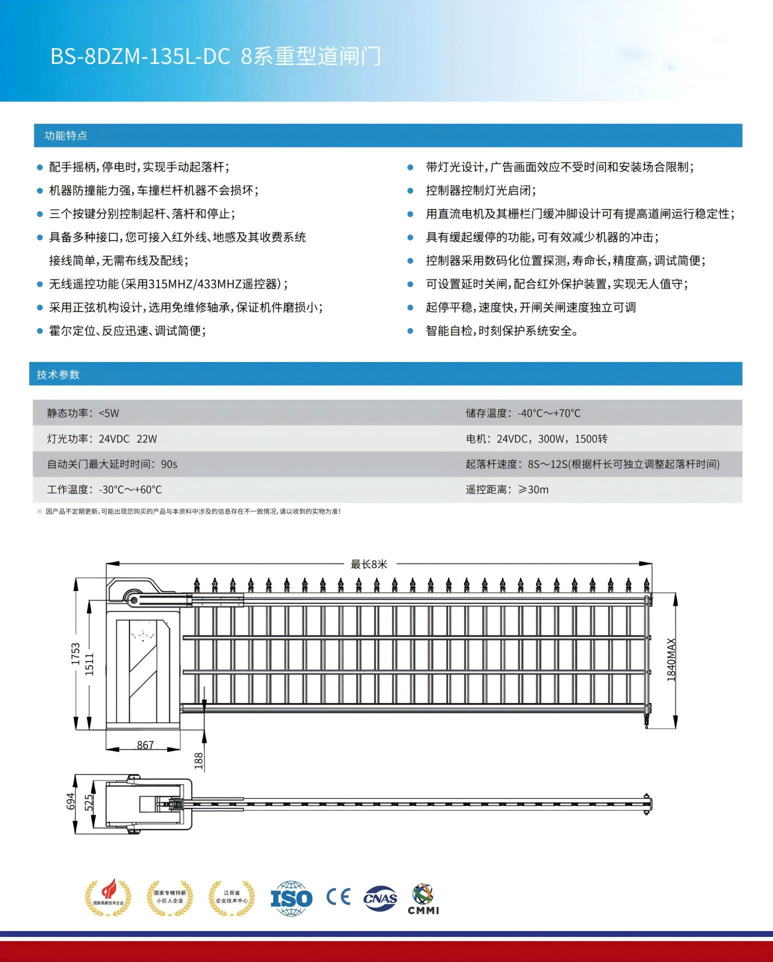 ● 配手搖柄,停電時(shí),實(shí)現(xiàn)手動(dòng)起落桿;