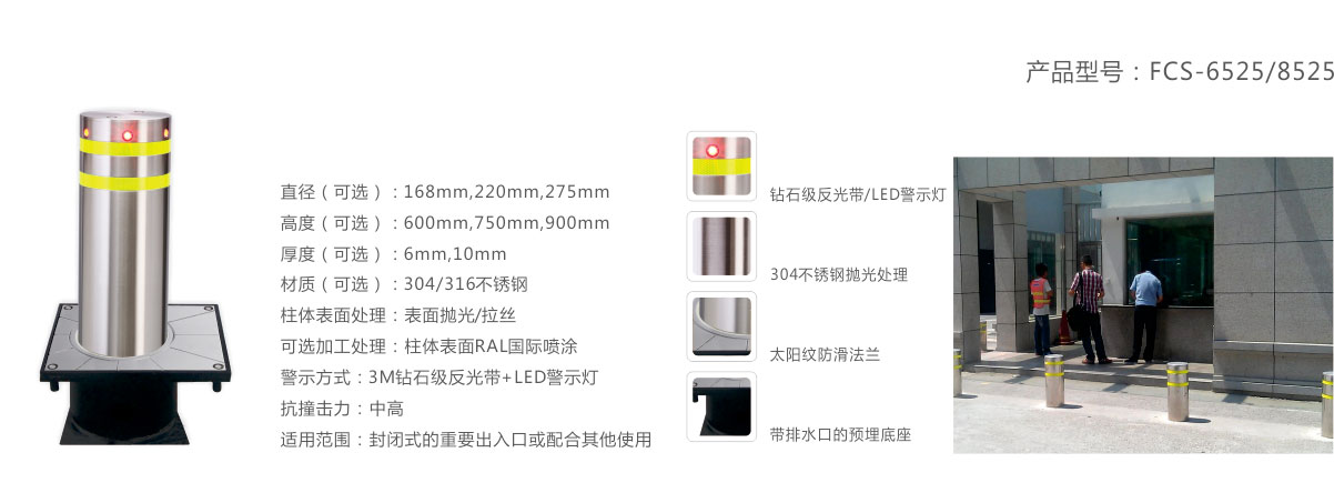 固定功能型護(hù)柱用以配套各型號(hào)全自動(dòng)、半自動(dòng)升降柱或單獨(dú)使用,通過(guò)專業(yè)的結(jié)構(gòu)及測(cè)試認(rèn)證,可用于高安全性場(chǎng)所使用。是一種真正具有威懾力和打擊犯罪效果出眾的產(chǎn)品。
