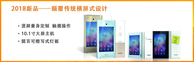 2018,安居寶以定制化的豎屏設(shè)計(jì)突破傳統(tǒng)橫屏設(shè)計(jì),如平板電腦般揮灑時尚大氣。為強(qiáng)調(diào)產(chǎn)品的多樣化和定制性,巡展中帶來新款10.1寸豎屏式主機(jī)和7寸豎屏終端,賦予靈動的品質(zhì)打造,機(jī)身與面板融為一體,嚴(yán)絲密縫間如一鏡面呈現(xiàn),兼具的白色燈板透光設(shè)計(jì),具備可擦寫式留言及夜光照明功能,實(shí)用與時尚并舉。