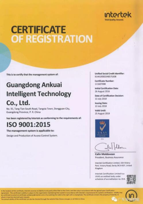 安快專注于停車場(chǎng)系統(tǒng)、通道閘、廣告道閘、通道門、道閘、車牌識(shí)別的研發(fā)生產(chǎn),公司自2016年取得ISO9001質(zhì)量管理體系認(rèn)證證書以來(lái),在企業(yè)管理體系工作方面不斷進(jìn)行積極探索,努力使企業(yè)管理體系工作上升到新高度。安快再次榮獲ISO9001:2015質(zhì)量管理體系認(rèn)證,標(biāo)志著安快已經(jīng)步入規(guī)范化、標(biāo)準(zhǔn)化以及科學(xué)化的現(xiàn)代企業(yè)管理軌道。