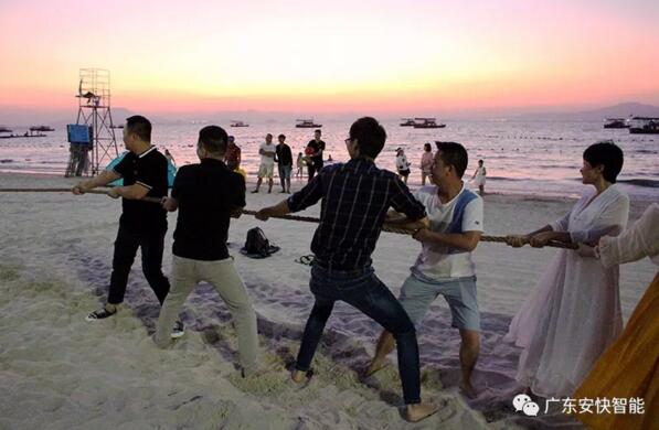 組織沙灘拔河比賽,場(chǎng)面熱火朝天,緊張、激烈