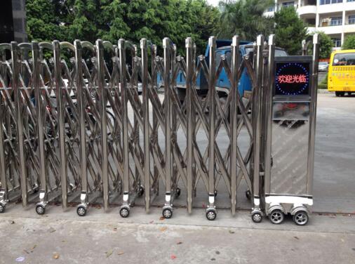 滄州電動伸縮門主要由門體、驅(qū)動電機,滑道、控制系統(tǒng)構成。門體采用優(yōu)質(zhì)不銹鋼及鋁合金專用型材制作,采用平行四邊形原理鉸接,伸縮靈活行程大,給滄州工貿(mào)學校項目不一樣的體驗。