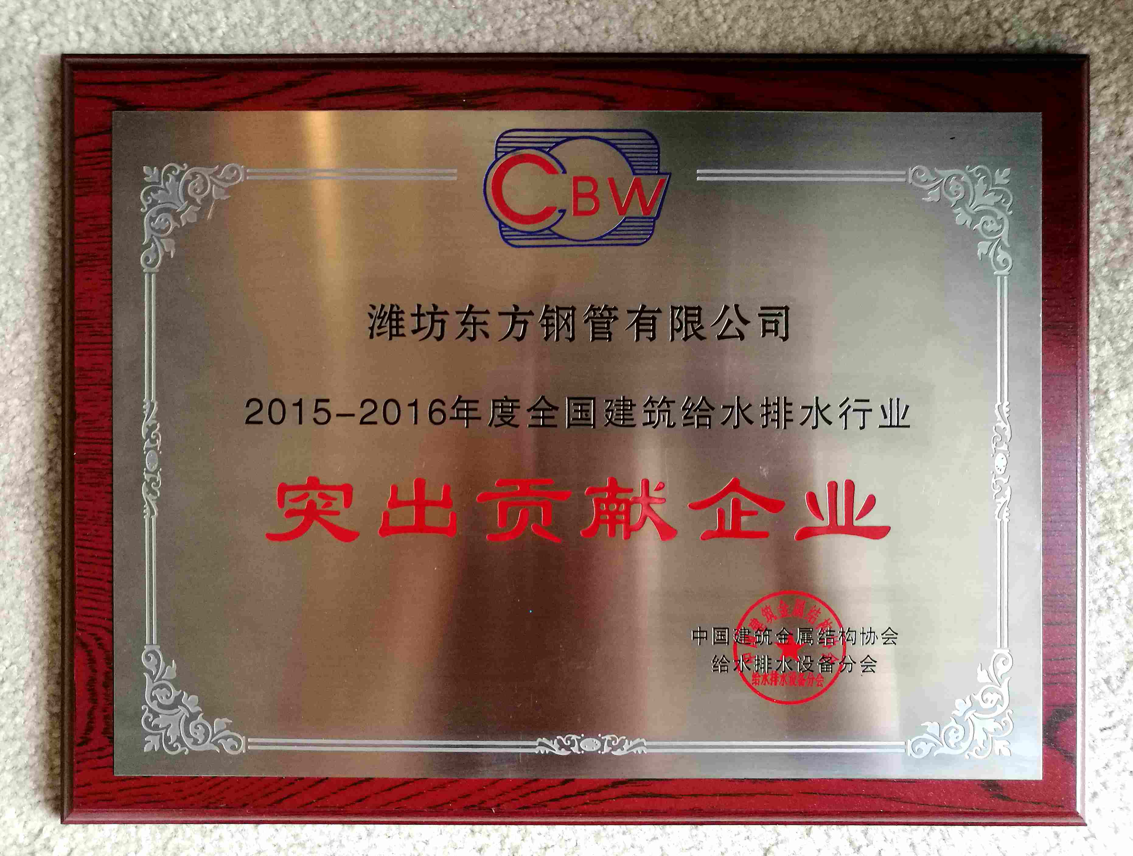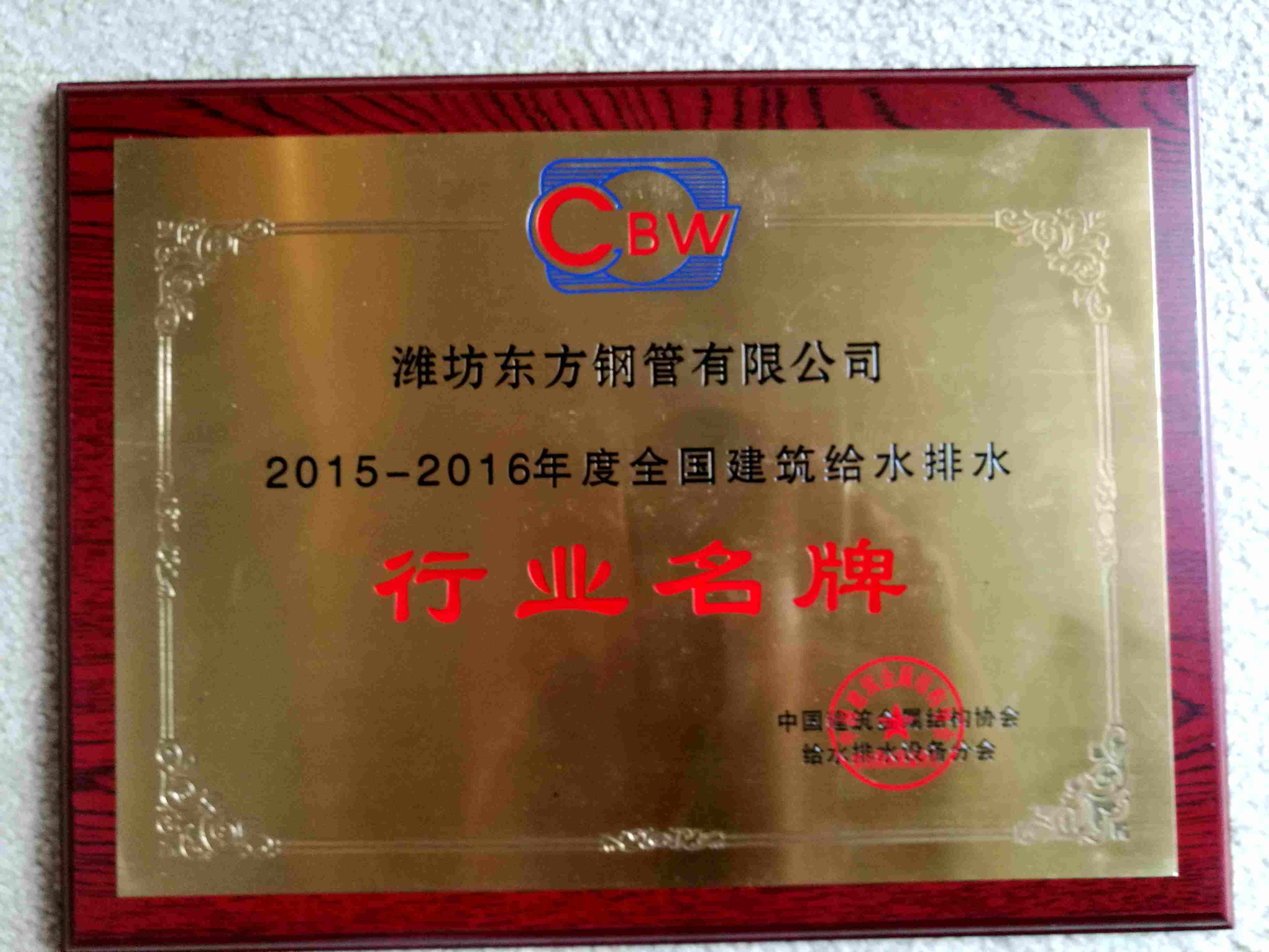 2017年9月7日,“2017年軍民融合給水排水技術研討會”在上海國際會展中心圓滿舉辦,濰坊東方鋼管有限公司作為中國管道商務網理事單位應邀參會。濰坊東方鋼管有限公司榮獲“行業(yè)名牌”和“突出企業(yè)貢獻獎”!
