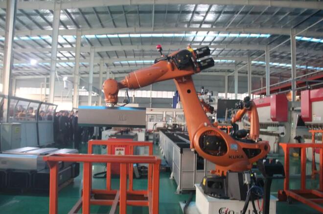 嘉賓重點參觀了“鈑金柔性生產(chǎn)線”、“智能加工中心”、“機器人焊接工作站“等智能化生產(chǎn)線,欣賞機器人協(xié)作完成的折彎、堆垛、焊接等一系列動作。