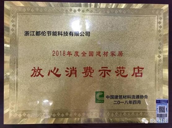 都倫在玖象家居體驗館開業(yè)儀式當(dāng)天被授予放心消費示范店。