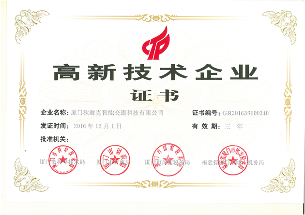 根據(jù)全國(guó)高新企業(yè)認(rèn)定管理工作領(lǐng)導(dǎo)小組辦公室發(fā)布的《高新技術(shù)企業(yè)認(rèn)定管理工作指引》(國(guó)科發(fā)火〔2016〕195號(hào)),廈門狄耐克智能交通科技有限公司(以下簡(jiǎn)稱狄耐克智能交通)順利通過(guò)廈門市科學(xué)技術(shù)局、廈門市財(cái)政局、廈門市國(guó)家稅務(wù)局、福建省廈門市地方稅務(wù)局的層層評(píng)審,獲得“廈門市2016年第二批高新技術(shù)企業(yè)”資格認(rèn)定。