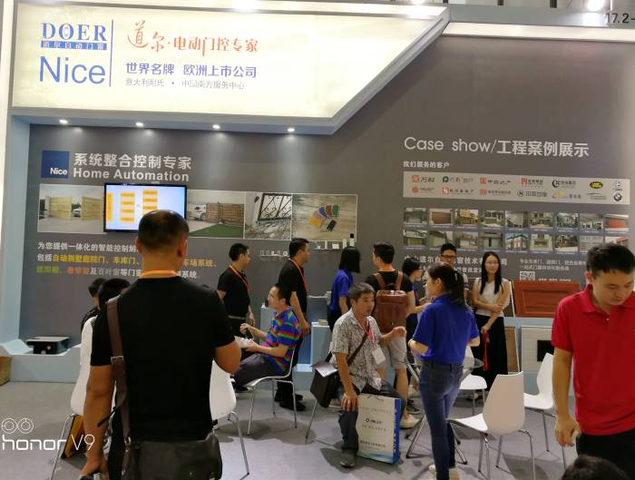 此次廣州建博會設(shè)智能、定制、系統(tǒng)、設(shè)計四大主題展區(qū),共吸引了2500多個品牌商參加。道爾公司攜其代理的【意大利品牌開門機】Nice,以最佳陣容參展。