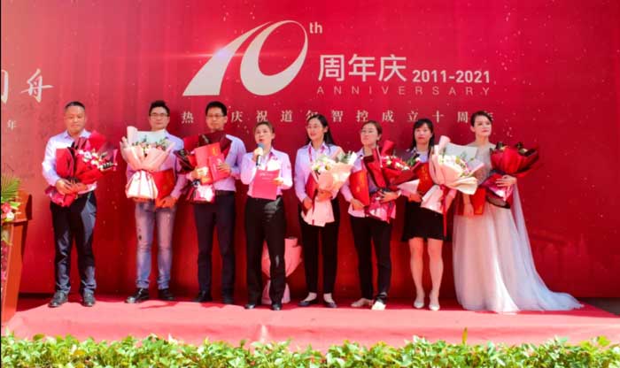 慶典活動(dòng)為10年來(lái)一直堅(jiān)守道爾的員工代表頒發(fā)證書和獻(xiàn)上鮮花,全體員工和嘉賓盡情分享了生日蛋糕和果品。慶典儀式在道爾歌曲《在一起》中閉幕。前后1個(gè)小時(shí)的慶典儀式,呈現(xiàn)出隆重、熱烈、精彩、節(jié)儉的鮮明風(fēng)格。