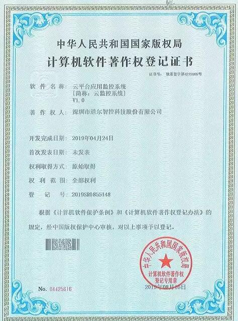 道爾智控(股票代碼:832966)近期先后獲得4項(xiàng)國家發(fā)明專利和軟件著作權(quán)。分別是國家知識(shí)產(chǎn)權(quán)局頒發(fā)的“LORA車位檢測器”《實(shí)用新型發(fā)明專利證書》;國家版權(quán)局頒發(fā)的“云平臺(tái)在線不宕機(jī)系統(tǒng)”、“云平臺(tái)應(yīng)用監(jiān)控系統(tǒng)”、“車牌相似度匹配算法系統(tǒng)”三項(xiàng)《計(jì)算機(jī)軟件著作權(quán)登記證書》。