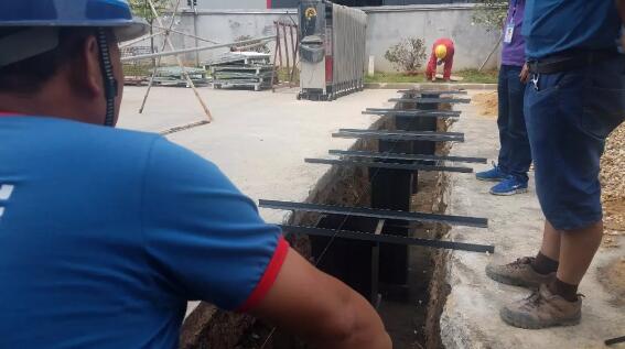 角鋼固定地基盒,地基盒放入預(yù)埋位置,間隔1.2米-1.5米(根據(jù)客戶要求)。